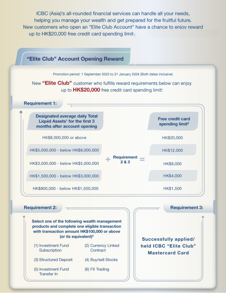 Rebates will be offered through free credit card spending limit under the ICBC “Elite Club” Mastercard Card.