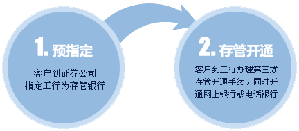 1、预指定:到证券公司指定工行为存管银行。
