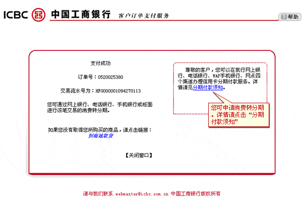 如您已在商户网站选购完毕,请使用工商银行网上支付进行付款(本页面仅供演示之用)。